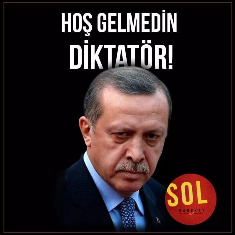 «Κακώς ήρθες, δικτάτορα»: Μία από τις αφίσες για τη συγκέντρωση διαμαρτυρίας κατά του Ερντογάν.