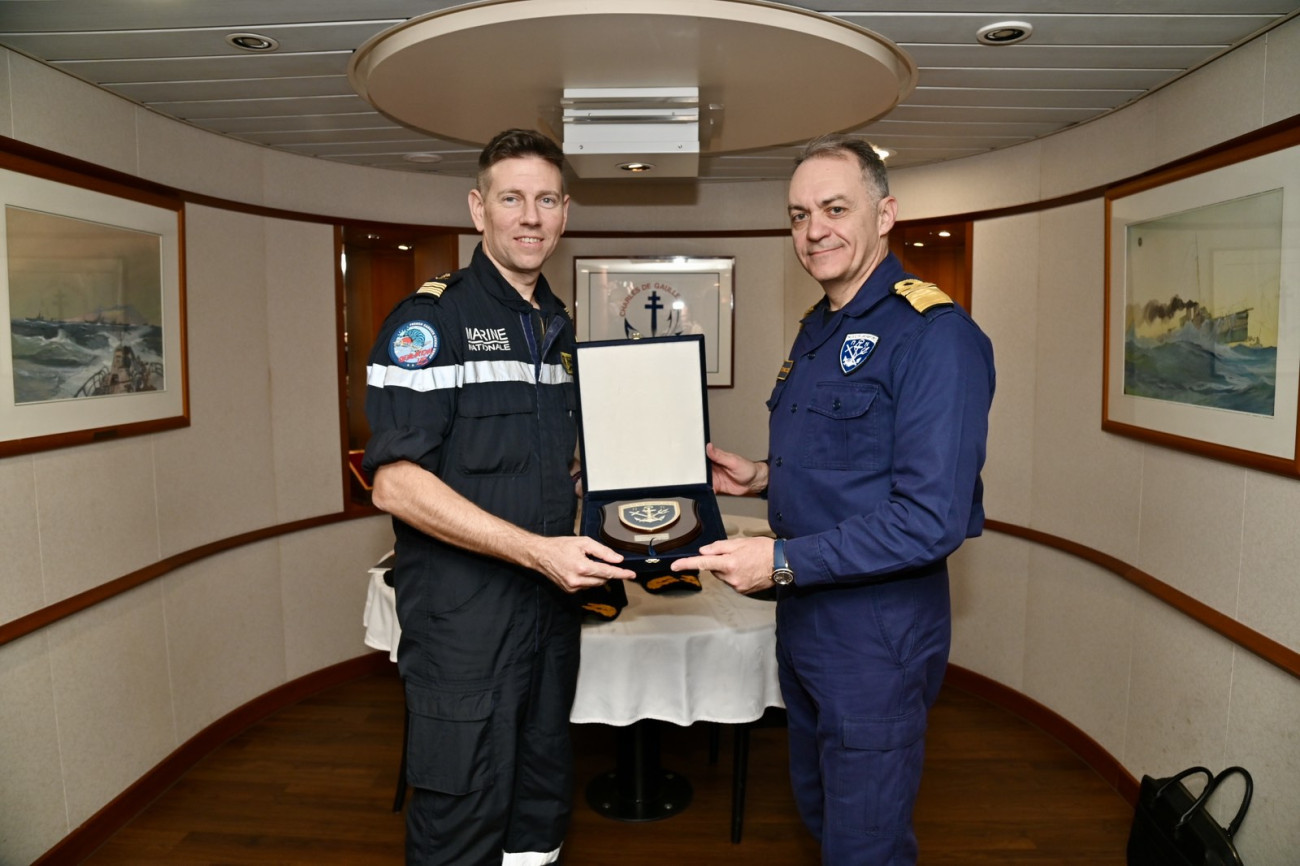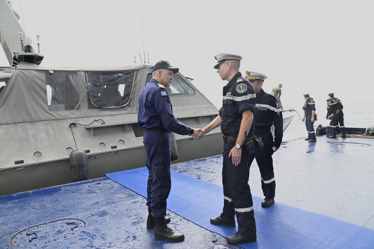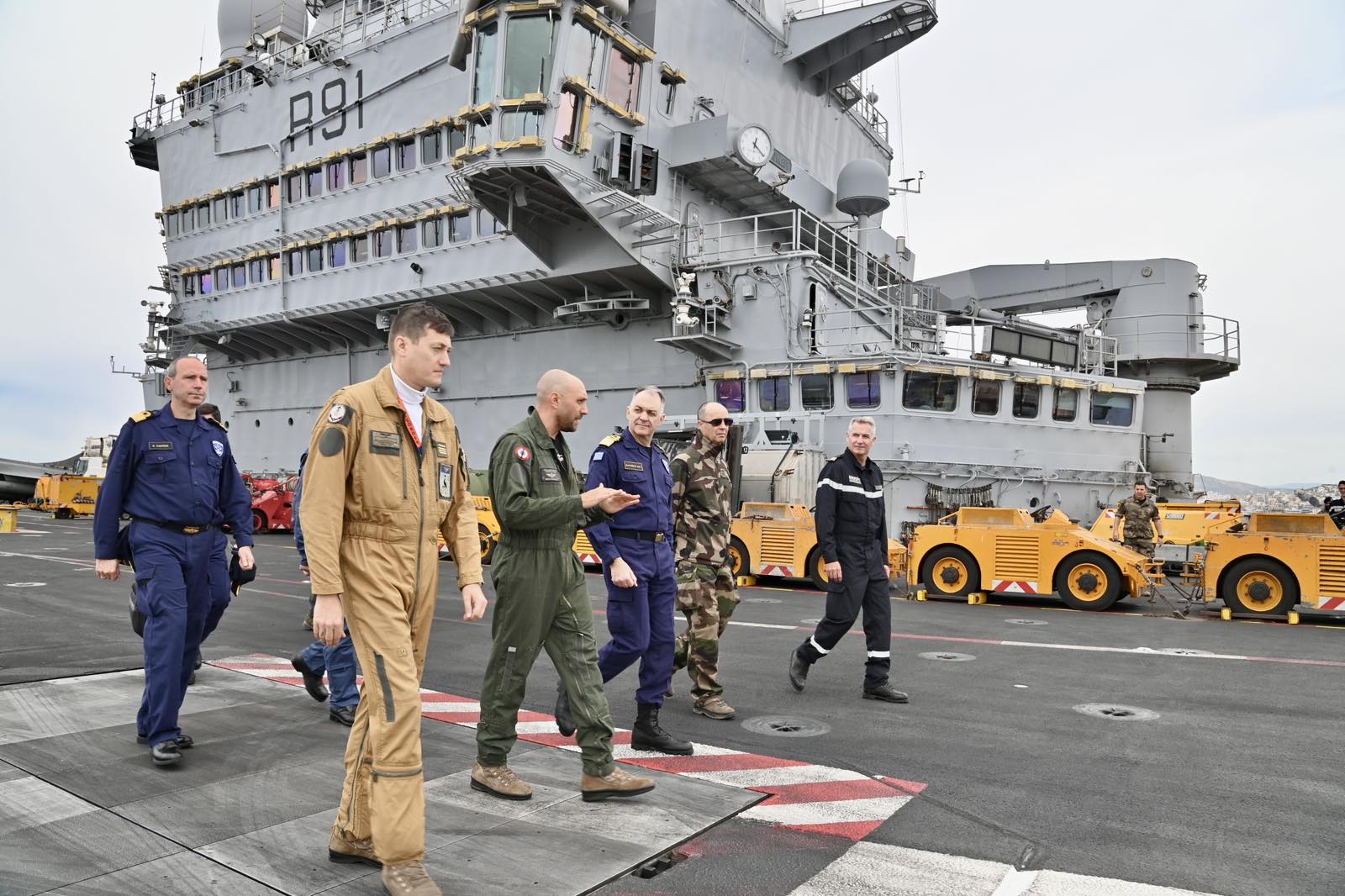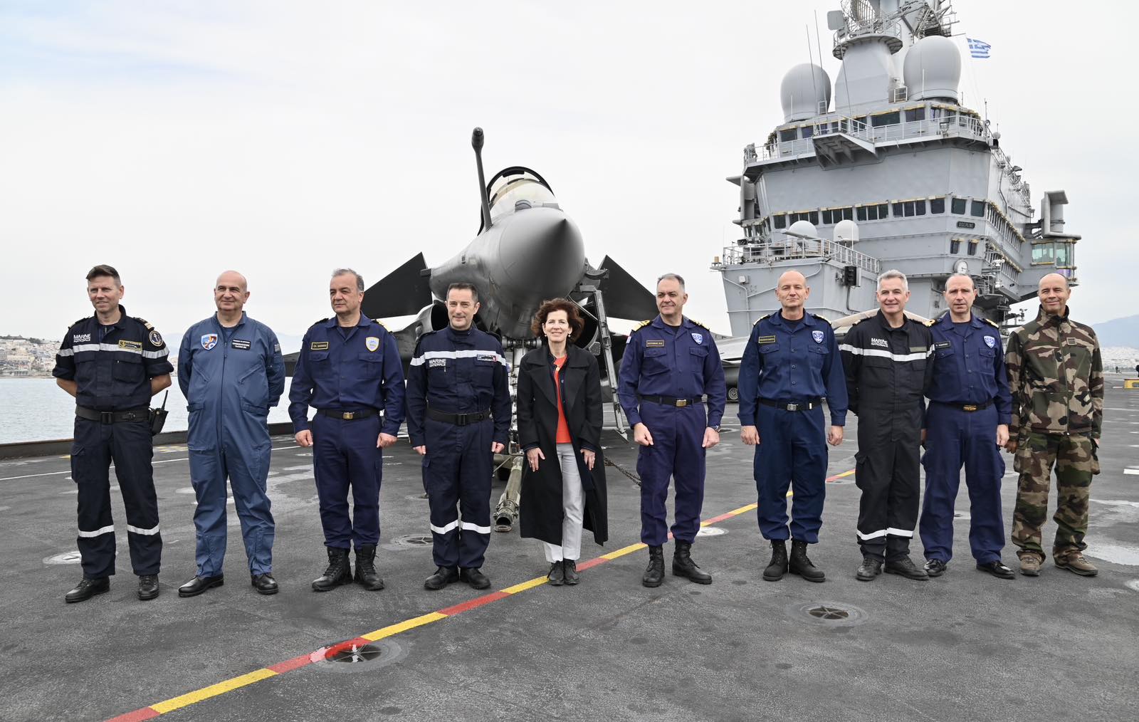 Όπως ανακοινώθηκε, τον αρχηγό ΓΕΝ υποδέχθηκε ο Γάλλος διοικητής της Ναυτικής Δύναμης Task Force 473 υποναύαρχος Jacques Mallard και ο κυβερνήτης του αεροπλανοφόρου πλοίαρχος Georges-Antoine Florentin.