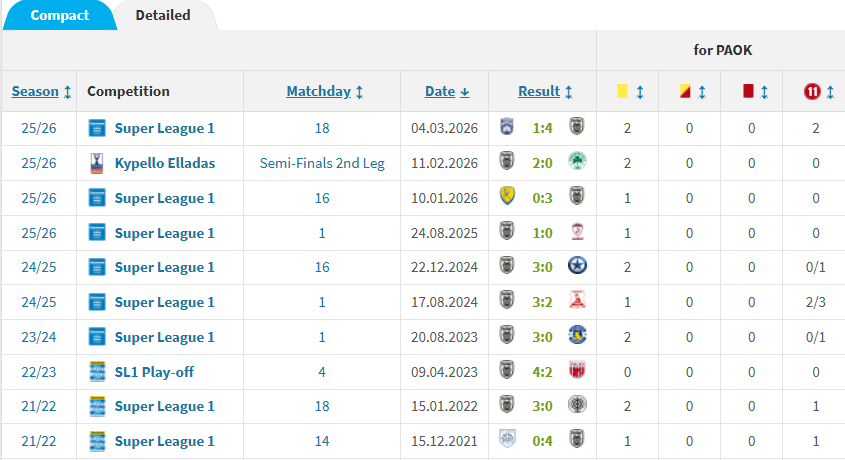 Απευθείας στην έδρα του ΠΑΟΚ που σαρώνει κάθε φορά που τον συναντα. Τι λένε τα κομπιούτερ και οι αριθμοί; Δέκα ματς τα τελευταία πέντε χρόνια σαν διαιτητής. Εννέα για το πρωτάθλημα και ένα για το κύπελλο. Δέκα νίκες ο ΠΑΟΚ. Με 32-5 γκολ. Ή πιο σωστά με επτά ματς που ο Δικέφαλος δεν είχε παθητικό. Και με πεναλτάρες σε δύο απο τα τρία που δέχτηκε γκολ.