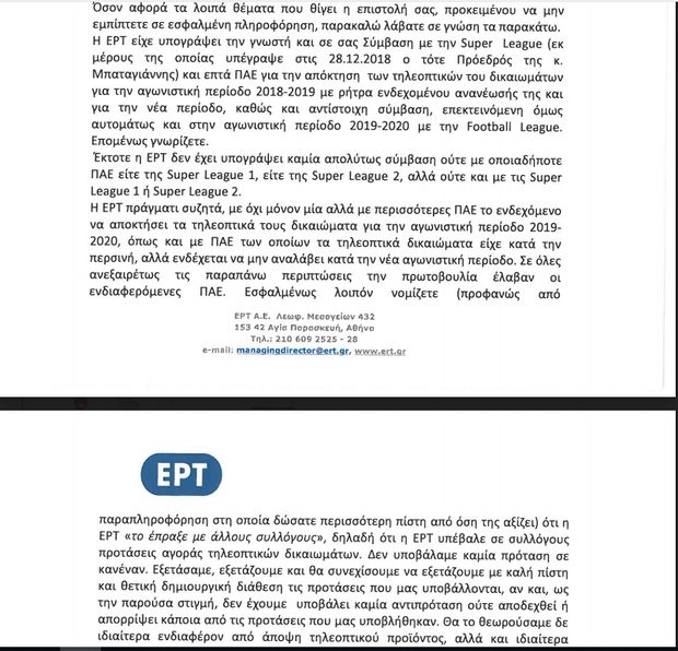 Με δύο λόγια; Μαγαζί γωνία η ΕΡΤ. Και όπως κυκλοφορούσε ευρέως, μέχρι να ξεκινήσει η προεκλογική περίοδος; Ήδη σε συζητήσεις και με τον ΠΑΟΚ ώστε να ενταχθεί και εκείνος στο «δημόσιο αγαθό». Σύμφωνα με το ρεπορτάζ η κουβέντα γίνονταν για συμβόλαιο 3ετές με ετήσιες αποδοχές κάτι σε 8-8.5 εκατ ευρώ!