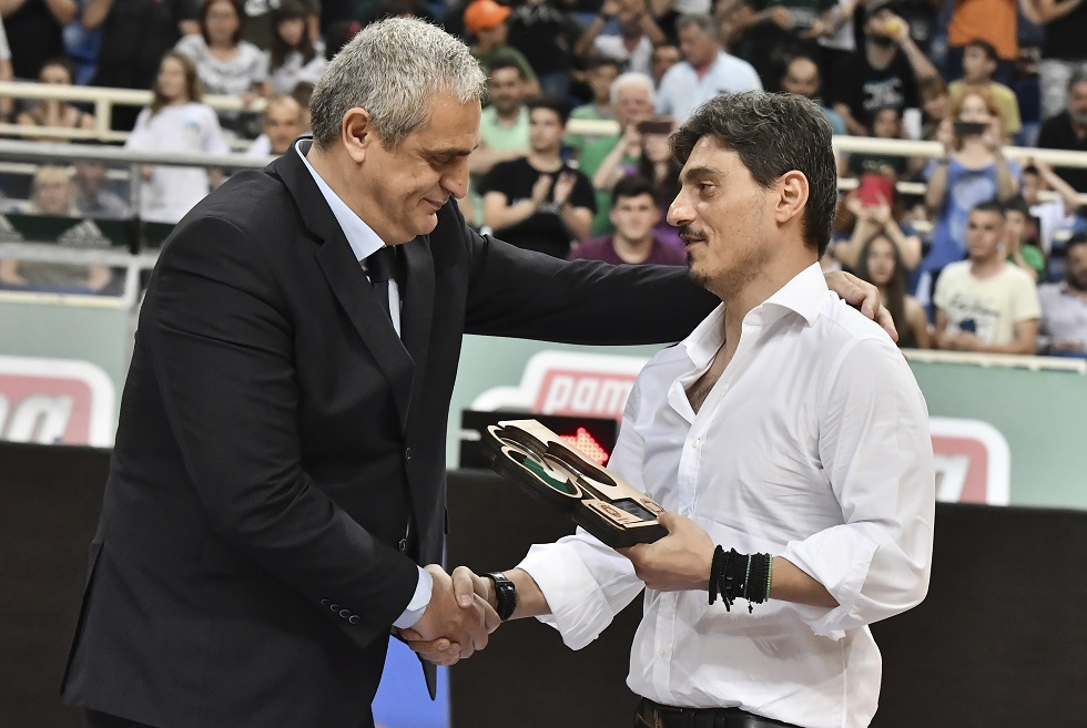 STOIXIMAN BASKET LEAGUE 01.06.2019-19:12 Ο ΠΑΟ τίμησε τον Πεδουλάκη Ο Δημήτρης Γιαννακόπουλος του παρέδωσε πλακέτα στο ημίχρονο του αγώνα στο ΟΑΚΑ Ανδρέας Χανιάς