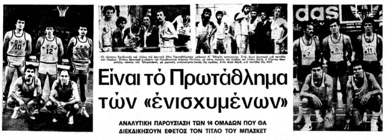 Στην παρουσίαση της ελληνικού πρωταθλήματος μπάσκετ που ξεκινά, ο Χρήστος Μότσιας και το περιοδικό «ΤΑΧΥΔΡΟΜΟΣ» γράφουν στις 22 Νοεμβρίου 1979.