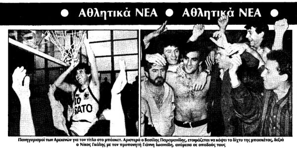 «Η Θεσσαλονίκη πανηγυρίζει, από το βράδυ του Σαββάτου, τον 6ο τίτλο της στο μπάσκετ. (…) Τρίτο πρωτάθλημα για τον Άρη, δεύτερος τίτλος για τον εξαίρετο τεχνικό κ. Γιάννη Ιωαννίδη. Το 1979, πάλι με τον ίδιο στην τεχνική ηγεσία, ο Άρης τερμάτισε πρωτοπόρος σπάζοντας το μονοπώλιο των τριών του Κέντρου (ΠΑΟ, ΑΕΚ, Ολυμπιακού).