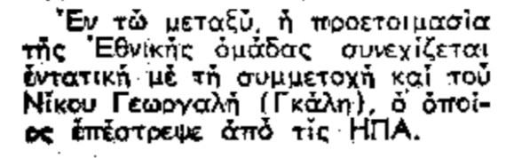 «Ο πρωταθλητής Άρης που πέτυχε πέρσι τη μεγάλη έκπληξη, κατακτώντας τον τίτλο, έδωσε κάπου 1.400.000 δραχμές, για να πάρει τον Ελληνοαμερικό πλαίη μαίηκερ Νικ Γκάλις.