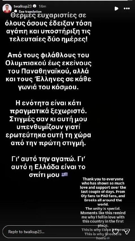 «Θερμές ευχαριστίες σε όλους όσους έδειξαν τόση αγάπη και υποστήριξη τις τελευταίες δύο ημέρες!