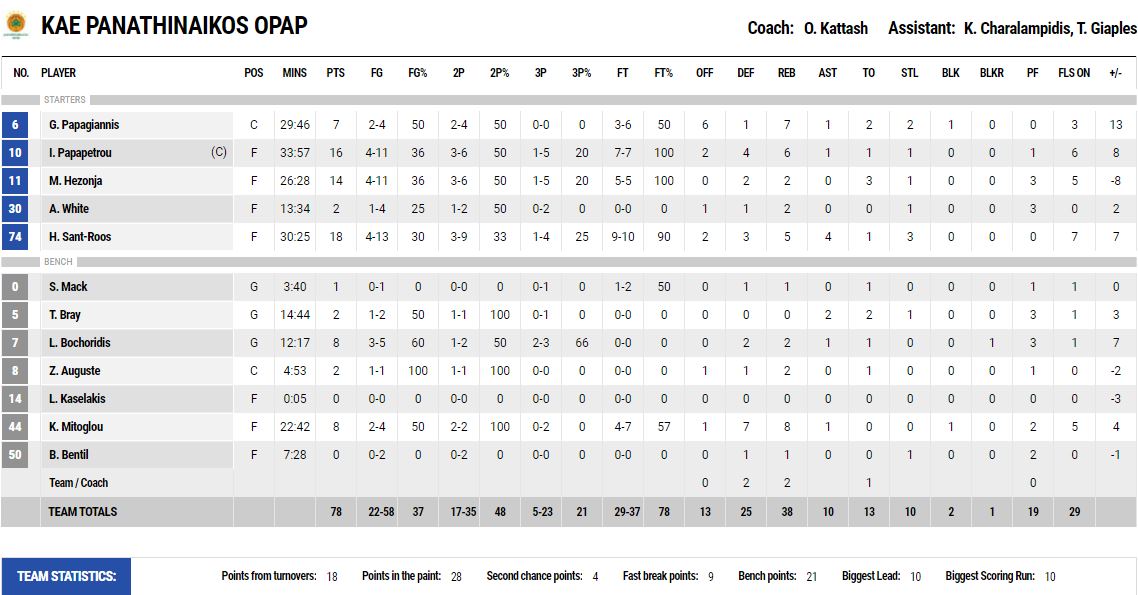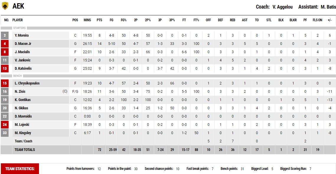 Το box score του αγώνα:
