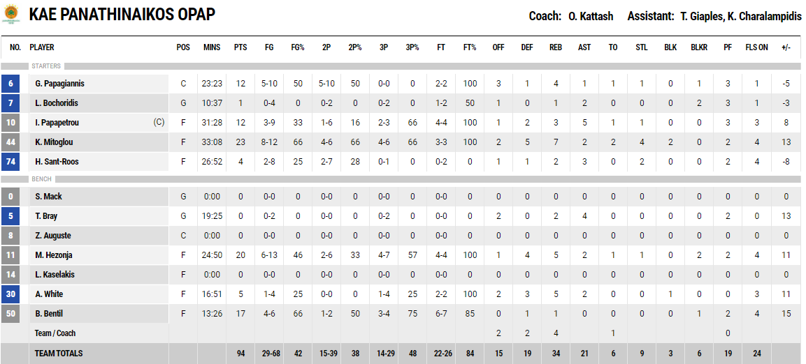 Πρώτοι σκόρερ για το «τριφύλλι» ήταν ο Ντίνος Μήτογλου με 23 πόντους, ενώ άλλους 20 πρόσθεσε ο Μάριο Χεζόνια σκοράροντας τους 12 εξ αυτών στην πρώτη περίοδο. Από την Ένωση ξεχώρισαν οι Γιανίκ Μορέιρα με 21, Ματ Λοτζέσκι με 16 και Γιόνας Ματσιούλις με 14 πόντους.