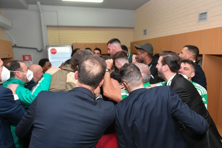 Οι πράσινοι πανηγύρισαν έξαλλα τη νίκη στα αποδυτήρια του γηπέδου, στήνοντας ένα μικρό πάρτι.