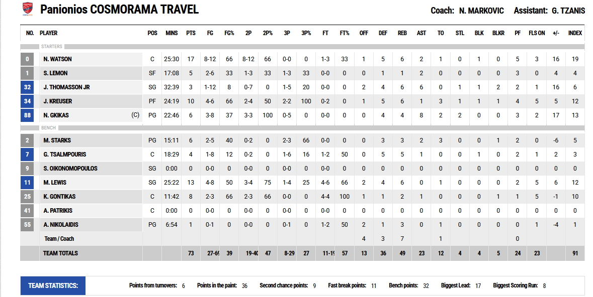 Ο Πανιώνιος αναδείχθηκε νικητής (73-62) στο ντέρμπι παραμονής με τον Κολοσσό Ρόδου όντας ανώτερος στη μεγαλύτερη διάρκεια του ματς.