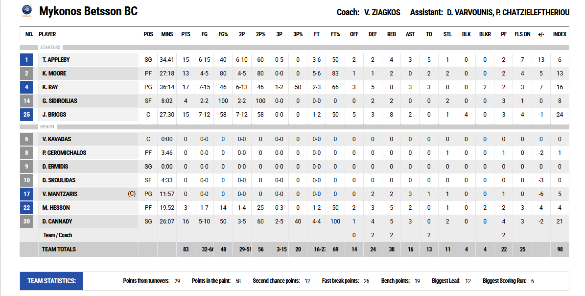 Στο κρίσιμο σημείο, η Μύκονος Betsson έδειξε μεγαλύτερη ψυχραιμία. Τα μεγάλα καλάθια των Ρέι και Κάναντι έδωσαν «ανάσα» στους γηπεδούχους, ενώ οι σωστές επιλογές στην τελική ευθεία και οι βολές στα τελευταία δευτερόλεπτα διατήρησαν το προβάδισμα, παρά την πίεση του Γηραιού, που μείωσε μέχρι τον πόντο.