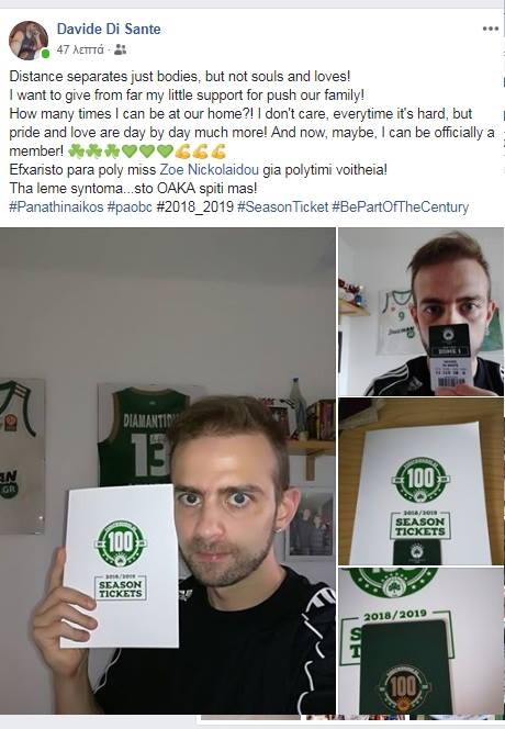 Ο Ιταλός φίλος των πρασίνων αγόρασε εισιτήριο διαρκείας του Παναθηναϊκού για τη νέα σεζόν. Το παρήγγειλε και το πλήρωσε κανονικά για να στηρίξει την ομάδα.