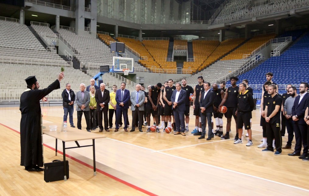 Το απόγευμα της Δευτέρας στο ΟΑΚΑ τελέστηκε ο καθιερωμένος αγιασμός για τη νέα αγωνιστική σεζόν, με τον πρόεδρο και μεγαλομέτοχο της Ενωσης, Μάκη Αγγελόπουλο, να δίνει το «παρών» και να εύχεται καλή επιτυχία στον Ιταλό προπονητή και τους παίκτες της ομάδας.