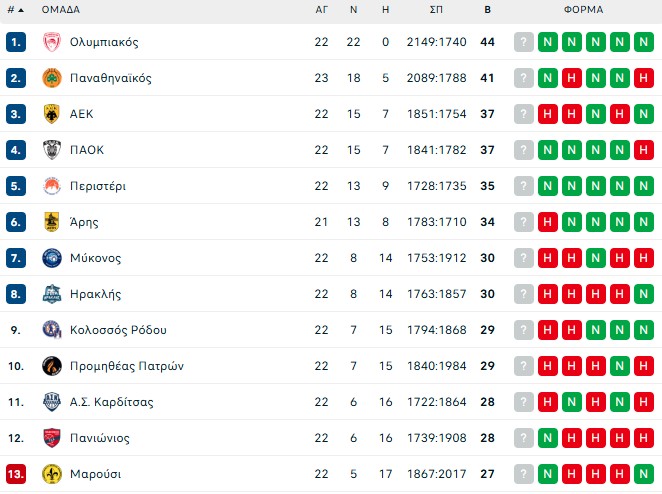 Έτσι οι «ασπρόμαυροι» ανέβηκαν στο 15-7 κλειδώνοντας ουσιαστικά την τετράδα, ενώ από την άλλη πλευρά, οι «κιντρινόμαυροι» έπεσαν στο 13-8 θέλοντας πλέον να πάρουν την καλύτερη δυνατή θέση ενόψει πλέι οφ.
