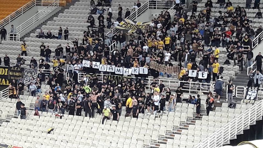 Πολλά είναι αυτά που χωρίζουν την πρωτεύουσα με την συμπρωτεύουσα και δεν αναφερόμαστε στα 500 χλμ. Ένα από τα βασικά διλήμματα σχετίζεται με το αν πρέπει να λέμε «σουβλάκι ή καλαμάκι»! Οι Αθηναίοι ψηφίζουν «καλαμάκι», οι Θεσσαλονικείς «σουβλάκι». Με βάση αυτό λοιπόν οι οπαδοί της ΑΕΚ που βρέθηκαν στο κλειστό του ΟΑΚΑ για το ματς της ομάδας τους κόντρα στον ΠΑΟΚ, αποφάσισαν να τρολάρουν τους φίλους του Δικέφαλου του Βορρά και το έκαναν με τον πλέον πρωτοποριακό τρόπο. Σήκωσαν μερικά χαρτιά τα οποία σχημάτιζαν την φράση: «ΚΑΜΑΚΙ ΡΕ» παίρνοντας ξεκάθαρη θέση στο παραπάνω ερώτημα!