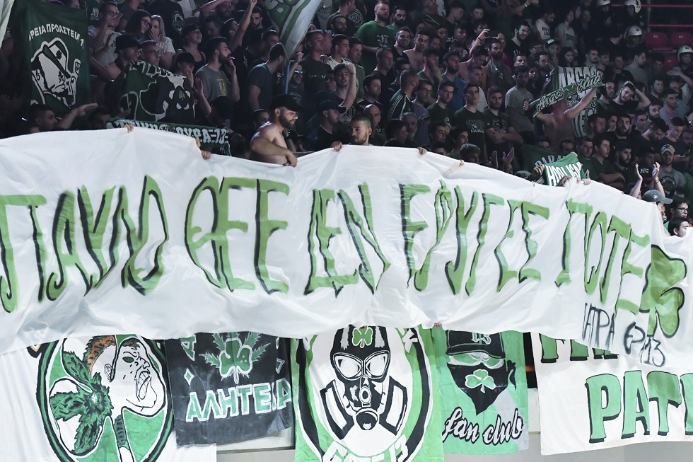 Οι φίλοι του Παναθηναϊκού έδωσαν το«παρών» στον δεύτερο τελικό της Basket League απέναντι στον Προμηθέα στην Πάτρα και δεν ξέχασαν τον Παύλο Γιαννακόπουλο.