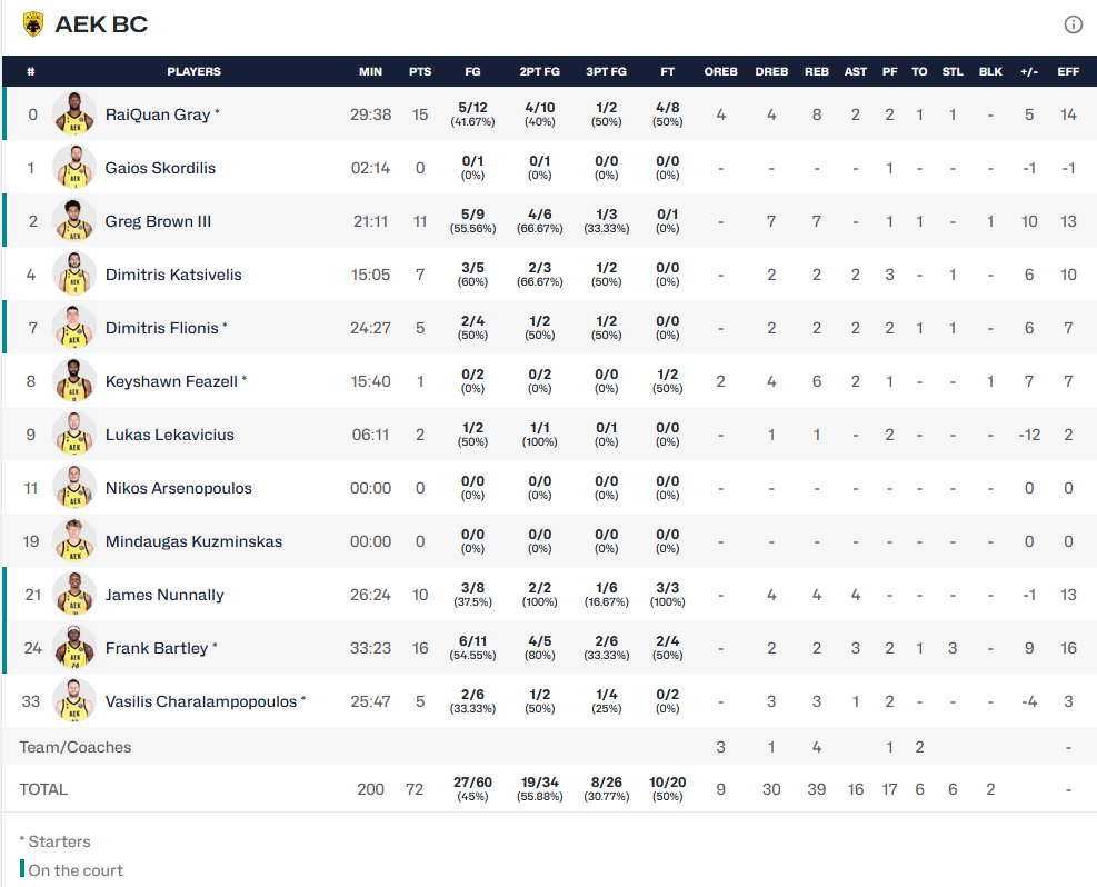 Τα δεκάλεπτα: 20-18, 34-40, 50-55, 72-67.