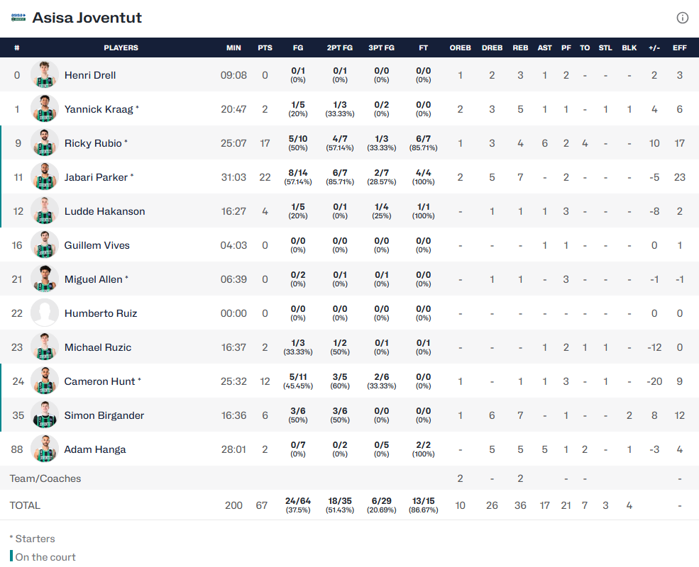 Ο Μπάρτλεϊ για άλλη μία φορά ήταν καθοριστικός για την ομάδα το Ντράγκαν Σάκοτα έχοντας 16 πόντους με 2 ριμπάουντ και 3 ασίστ ενώ 15 είχε ο Γκρέι με 8 ριμπάουντ και 2 ασίστ. Κομβικός στο φινάλε ο Κατσίβελης των 7 πόντων. Για την Μπανταλόνα, που είναι η διοργανώτρια του Final 4, στους 22 πόντους σταμάτησε ο Πάρκερ και στους 17 ο Ρούμπιο.