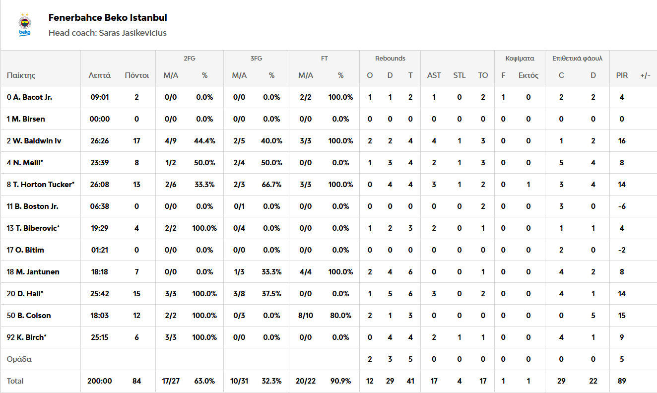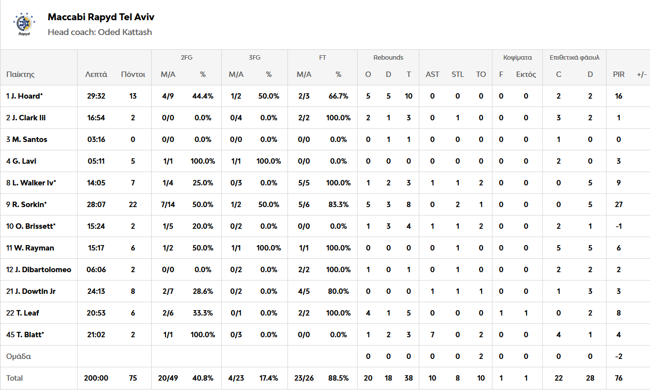 Η ομάδα του Σαρούνας Γιασικεβίτσιους βρίσκεται πλέον στο 5-5 ενώ εκείνη του Οντέντ Κάτας παραμένει ουραγός με 2-8. Ο Μπόλντουϊν με 17 πόντους και 4 ριμπάουντ ήταν ο κορυφαίος των νικητών που είχαν στους διακριθέντες και τον Χολ με 15 πόντους και 6 ριμπάοντ. Για τη Μακάμπι ξεχώρισε ο Σόρκιν με 22 πόντους και 7 ριμπάουντ.