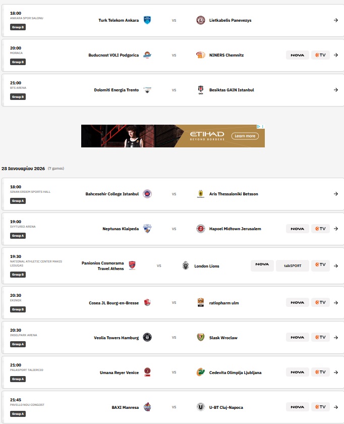 Έχουμε και λέμε. Αυτή τη στιγμή ο Άρης με ρεκόρ 7-8 είναι 7ος στην κατάταξη, με τις έξι πρώτες ομάδες να είναι αυτές που παίρνουν το εισιτήριο για την επόμενη φάση της διοργάνωσης. Οι κιτρινόμαυροι έχουν να παίξουν ακόμη με τη Μπασεκσεχίρ (ρεκόρ 10-5) εκτός την προσεχή εβδομάδα (28/1), την προτελευταία (4/2) υποδέχονται τη Νεπτούνας Κλαϊπέδα (6-9) και την τελευταία (11/2) δοκιμάζεται στην Ρουμανία απέναντι στη Κλουζ Ναπόκα (8-7).