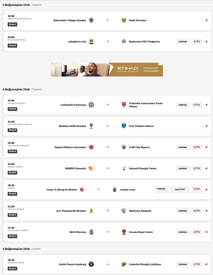 Η βαθμολογία στον όμιλο του Άρη στο EuroCup σε 15 αγωνιστικές