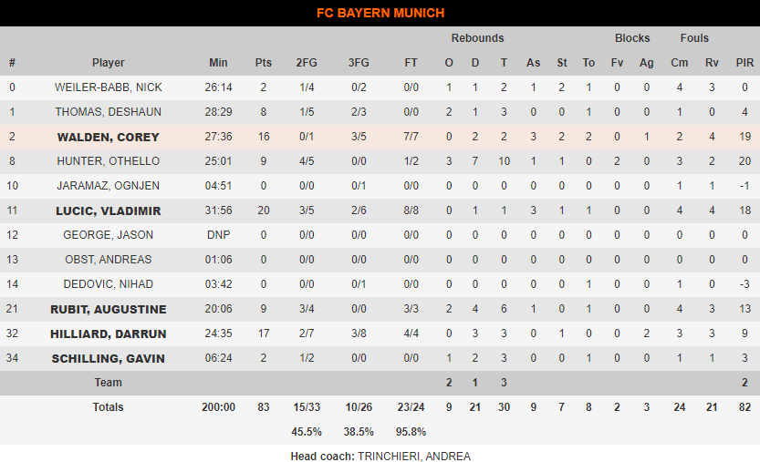 Την πρώτη της ήττα στη διοργάνωση υπέστη η Αρμάνι Μιλάνο, καθώς η Μπάγερν Μονάχου επικράτησε των Ιταλών με σκορ 83-77, παίρνοντας ένα τρομερά σημαντικό αποτέλεσμα ενόψει της συνέχειας.