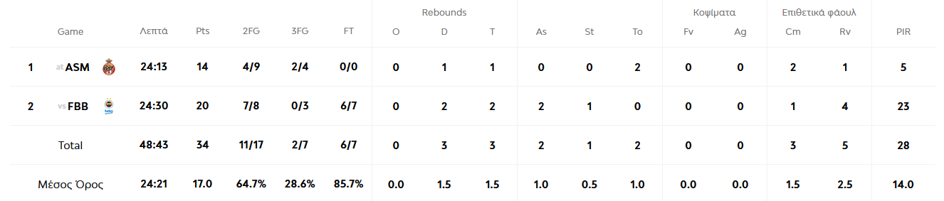 Ο Γκος συνολικά παίζει 24 λεπτά ανά ματς και έχει 17 πόντους μέσο όρο, με σχεδόν 65% στο δίποντο, 85,7% στις βολές και 28,6% στο τρίποντο, ενώ είναι αυτός που αναλαμβάνει να μαρκάρει τον καλύτερο αντίπαλο γκαρντ τόσο στην αναμέτρηση με τη Μονακό, όσο και στο ματς με τη Φενέρ.