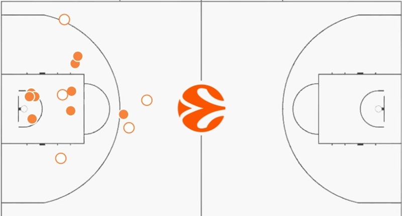 Το Shot Chart του Τάιλερ Ντόρσεϊ στο ματς με τη Μονακό.