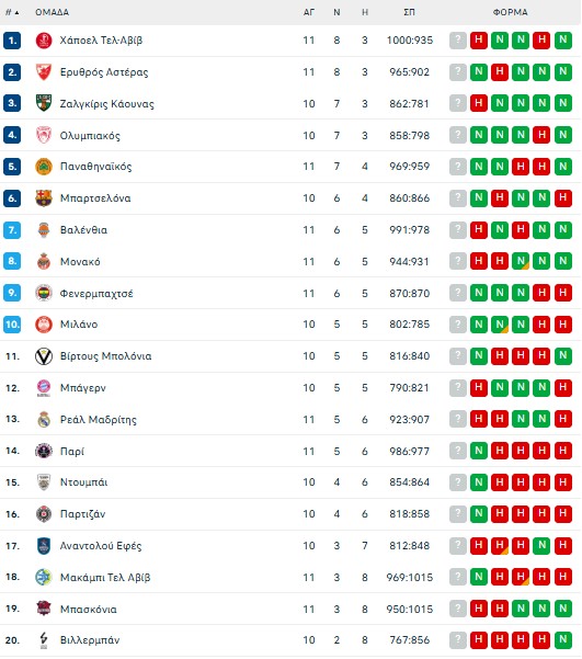 Αρμάνι Μιλάνο – Χάποελ Τελ Αβίβ 20/11 στις 21:30