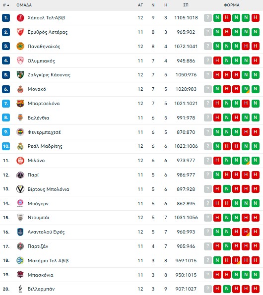 Δείτε πως έχει διαμορφωθεί η βαθμολογία της Euroleague μετά τη νίκη του Παναθηναϊκού.