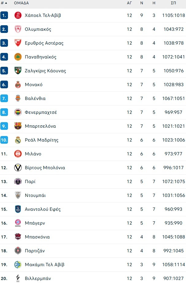Αναλυτικά το πρόγραμμα της 13ης αγωνιστικής της Euroleague: