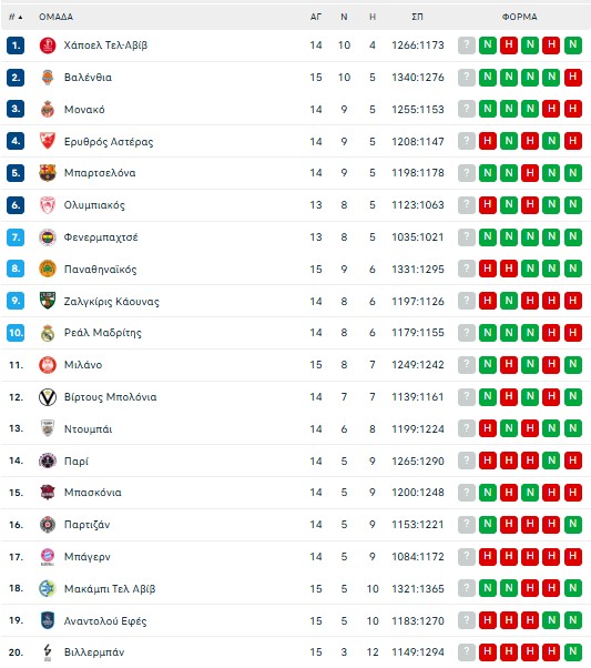 Δείτε πως έχει διαμορφωθεί η βαθμολογία της Εuroleague μετά τα σημερινά αποτελέσματα.