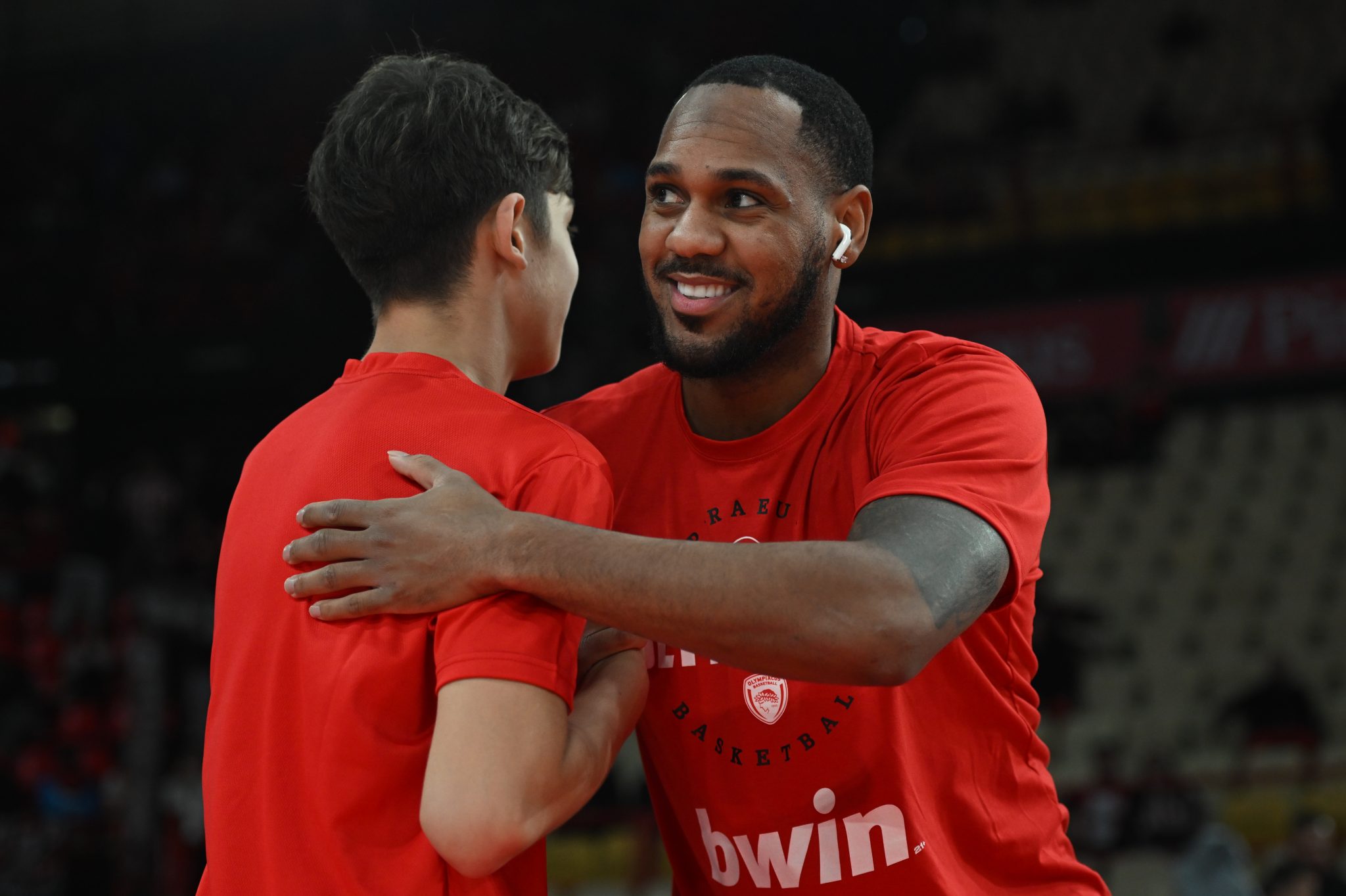 Ο Αμερικανός γκαρντ του Ολυμπιακού βγήκε στο παρκέ πριν από το ματς με τις «νυχτερίδες» και αποθεώθηκε από τον κόσμο της ομάδας, ανταποδίδοντας και το χειροκρότημα.