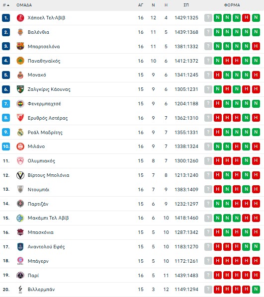 Από την άλλη, ο Παναθηναϊκός πέρασε από την έδρα της Φενέρμπαχτσε με 81-77 σε ένα παιχνίδι που κρίθηκε στο τέλος. Οι Πράσινοι έχουν πλέον ρεκόρ 10-6 και παραμένουν κοντά στο… πλεονέκτημα, ενώ οι Τούρκοι έπεσαν στο 9-6.