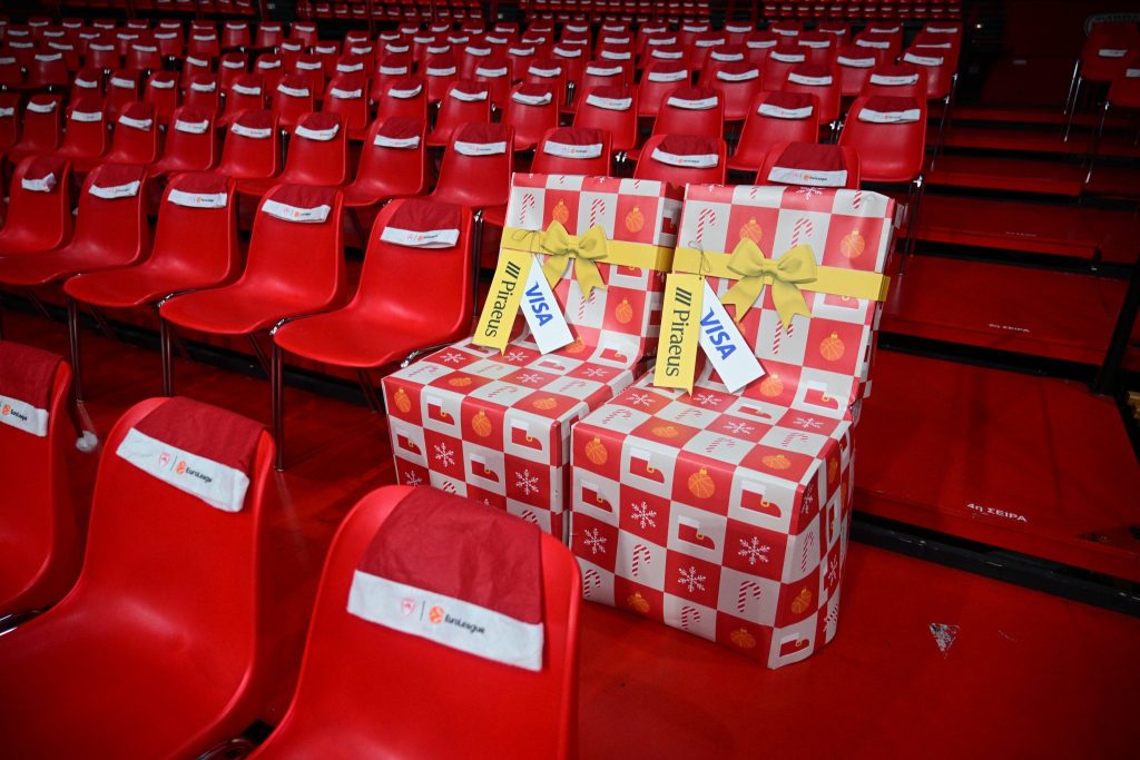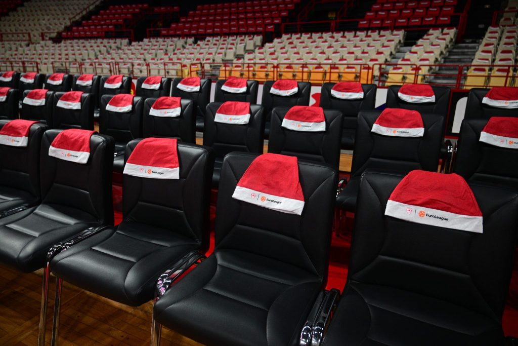 Το ΣΕΦ βρίσκεται σε εορταστική διάθεση με την ΚΑΕ να έχει φροντίσει να υπάρχει σε κάθε θέση από ένα σκουφάκι το Αϊ Βασίλη, με το σήμα του Ολυμπιακού και της Euroleague, με το ΣΕΦ να μπαίνει σε… mood Χριστουγέννων.