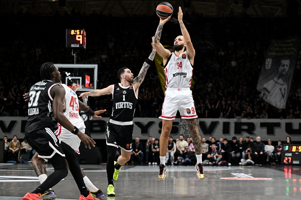 Ο Ολυμπιακός πήρε ένα τεράστιο διπλό στην έδρα της Βίρτους Μπολόνια, με τον Εβάν Φουρνιέ να είναι ένας από τους μεγάλους πρωταγωνιστές. Ο Γάλλος γκαρντ… παρέδωσε μαθήματα στο σουτ τελειώνοντας τον αγώνα με 21 πόντους (7/10 τρίποντα), ενώ παράλληλα τα πήγε πολύ καλά αμυντικά παίζοντας «deny» (άρνηση) στον Κάρσεν Έντουαρντς.