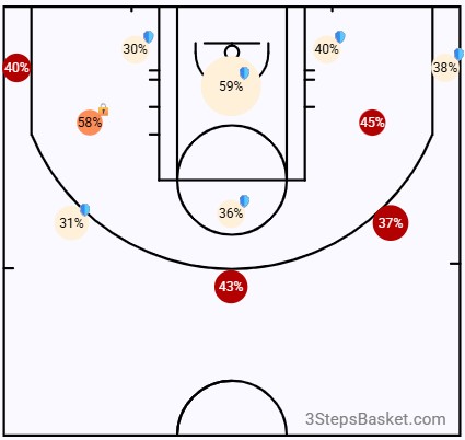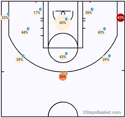 Το Shot Chart των αντιπάλων του Ολυμπιακού από τη 19η αγωνιστική έως την 24η.