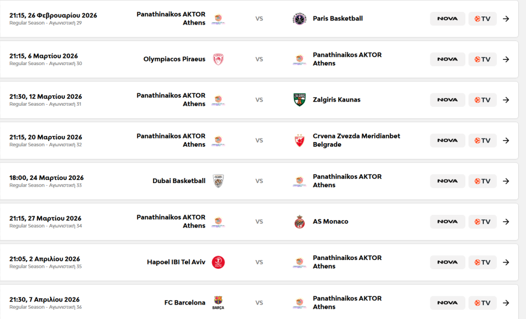 Το πρόγραμμα του Παναθηναϊκού μέχρι το φινάλε της regular season