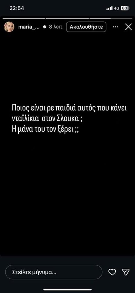 «Ποιός είναι αυτός που κάνει που κάνει νταϊλίκια στον Σλούκα; Η μάνα του τον ξέρει;», ανέφερε χαρακτηριστικά στο μήνυμά της η σύζυγος του Κώστα Σλούκα, μετά την ένταση που υπήρξε ανάμεσα στον άσο του Τριφυλλιού και τον σέντερ του Ολυμπιακού.