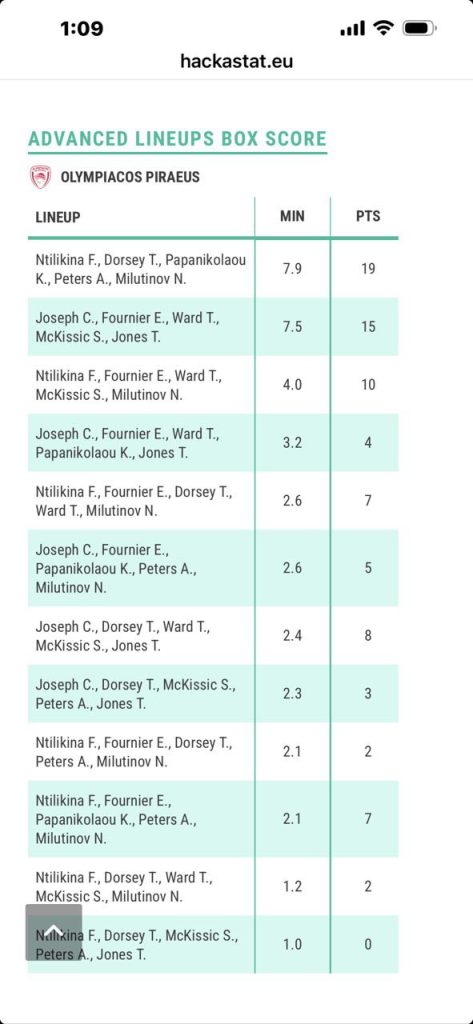 Αξίζει να αναφερθεί πως οι ερυθρόλευκοι πήραν 45 πόντους από Νιλικίνα, Τζόσεφ, Ντόρσεϊ και Μιλουτίνοφ και 79 από τους 7 παίκτες από τους 10 παίκτες που αγωνίστηκαν στο παιχνίδι.