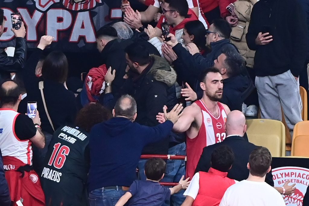 Μετά το τέλος του παιχνιδιού οι παίκτες του Ολυμπιακού έγιναν ένα με τον κόσμο, τραγούδησαν συνθήματα μαζί, ενώ εκεί έκαναν και το καθιερωμένο τους «σντο».