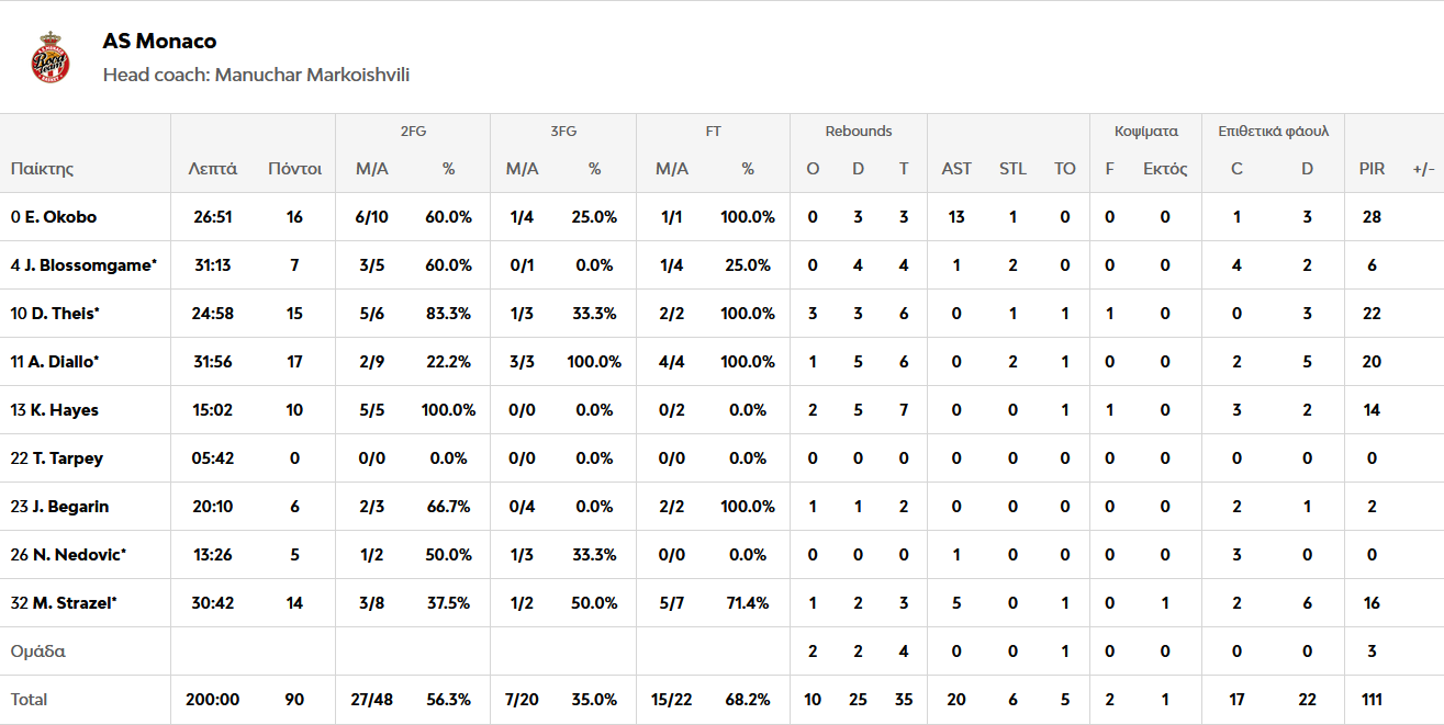 Προηγήθηκε με +9 (63-75, 31′) στο ξεκίνημα του τέταρτου δεκαλέπτου, αλλά οι εννιά… ηρωικοί παίκτες της Μονακό, δεν είχαν πει την τελευταία λέξη. Με εκπληκτικό επιμέρους 18-4 γύρισαν το παιχνίδι με 86-82 ακριβώς 30 δευτερόλεπτα πριν από το τέλος και έφτασαν στη νίκη με 90-85.