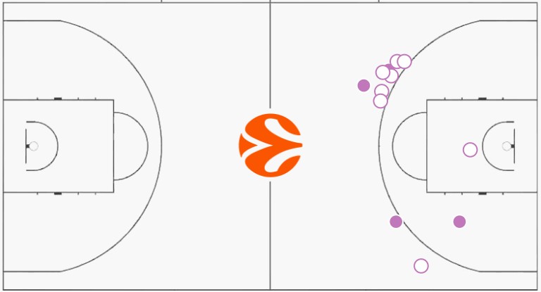 Το Shot Chart του Ζαν Μοντέρο με τον Ολυμπιακό.