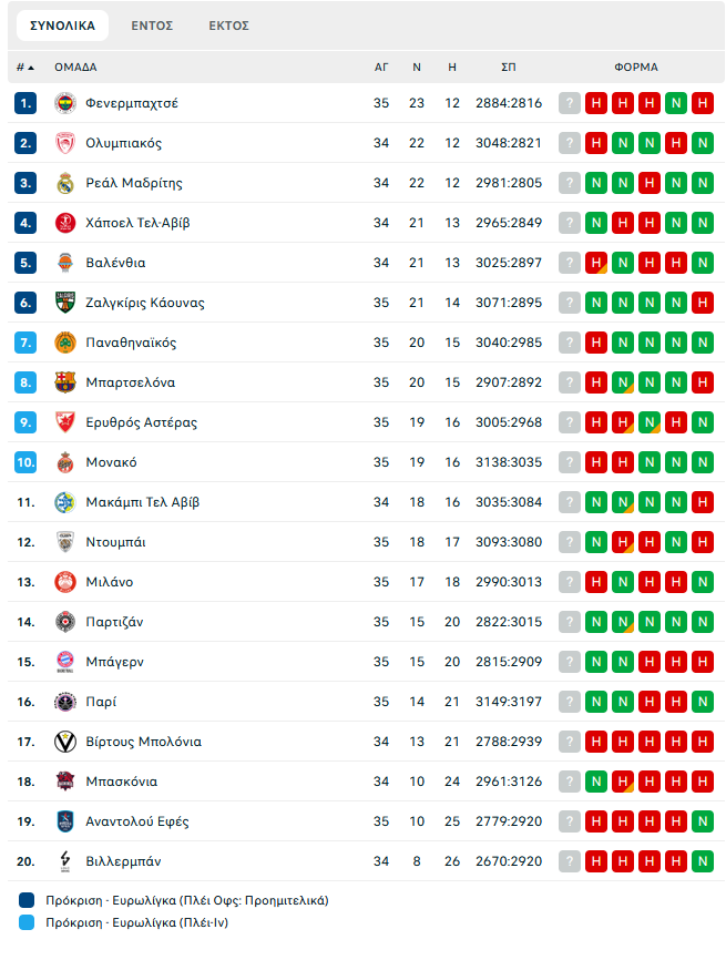 Για την πρώτη 6άδα που εγγυάται μια θέση στα playoffs. Διότι τρεις στροφές πριν από την ολοκλήρωση της κανονικής διάρκειας έπαψε να ελέγχει ακόμη και αυτή τη μάχη. Η Βαλένθια που παίζει αύριο με την αδιάφορη Βίρτους στην Ιταλία είναι 4η με 21-13. Καταλαβαίνει κανείς πως ενδεχόμενη νίκη της θα ανεβάσει και την 5η θέση δύο νίκες μακριά από τον Παναθηναϊκό