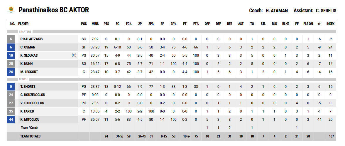 Όπως μπορεί εύκολα να δει κανείς από τους χρόνους στα δύο παιχνίδι, οι πράσινοι «έσκασαν», με αποκορύφωμα τον Ματίας Λεσόρ, αλλά και τον Τσέντι Οσμάν που έκανε υπερπροσπάθεια με σχεδόν 72 λεπτά συμμετοχής μέσα σε τέσσερις μέρες και σε δύο πολύ απαιτητικά παιχνίδια.