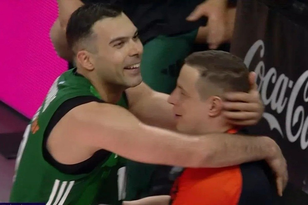 Kostas Sloukas ile maçın hakemlerinden Olegs Latisevs arasında tatlı bir an 🫂 #EveryGameMatters pic.twitter.com/XLO5UCq77v