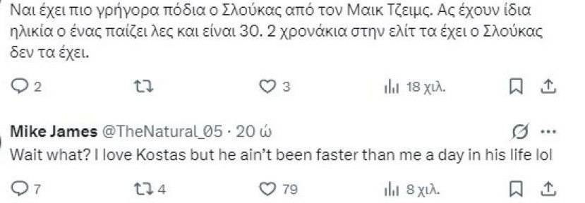 Ο λάτρης του X, Μάικ Τζέιμς απάντησε σε μία διαδικτυακή συζήτηση που αφορούσε εκείνον αλλά και τον Κώστα Σλούκα και έκανε το δικό του σχόλιο σχετικά με το ποιος από τους δύο είναι πιο γρήγορος παίκτης!