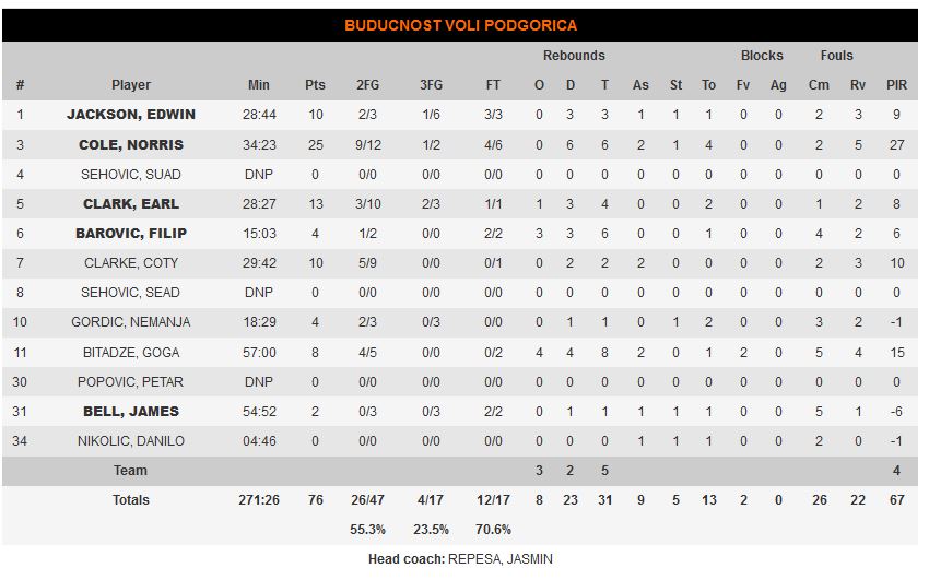 Στα του αγώνα, ο Νόρις Κόουλ που επέστρεψε στο Ισραήλ ως αντίπαλος της Μακάμπι έφτασε τους 25 πόντους και τα 6 ριμπάουντ. Εξ’ αρχής ο Αμερικανός μπήκε δυναμικά στο παιχνίδι και έδωσε προβάδισμα στην Μπουντούτσνοστ (0-6), με τους Κλαρκ – Μπάροβιτς να βοηθούν έγινε το 8-18 δύο λεπτά πριν την ολοκλήρωση της πρώτης περιόδου. Ο Μπλακ μείωσε στο δεκάλεπτο (12-18).