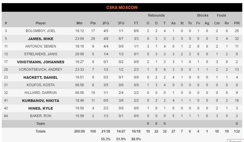 Το πιο… καυτό πιστόλι ήταν ο Μάικ Τζέιμς, ο οποίος έκανε το… τέλειο παιχνίδι. Γιατί όταν κάποιος πετυχαίνει 29 πόντους σε 23 λεπτά, έχοντας 6/7 τρίποντα και μοιράζει 3 ασίστ, αγγίζει την τελειότητα. Ήταν κι ο Μπολομπόι σε καλή μέρα (πέτυχε 17 πόντους, χάνοντας μόλις ένα σουτ), έβαλαν Κουρμπάουνφ κι Αντόνοφ τα… προβλεπόμενα και πάμε γι’ άλλα.