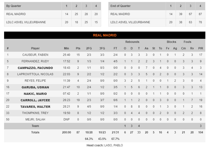 Από την στιγμή που η Ρεάλ πήρα αυτό το προβάδισμα, δεν κοίταξε ξανά πίσω. Προηγήθηκε με 9 πόντους (74-65) και κάπου εκεί η Βιλέρμπάν δεν μπόρεσε να ανιδράσει επιπλέον με το ματς να καταλήγει στην Βασίλισσα η οποία έβγαλε την… υποχρέωση και κυνηγάει την Εφές στην βαθμολογία.