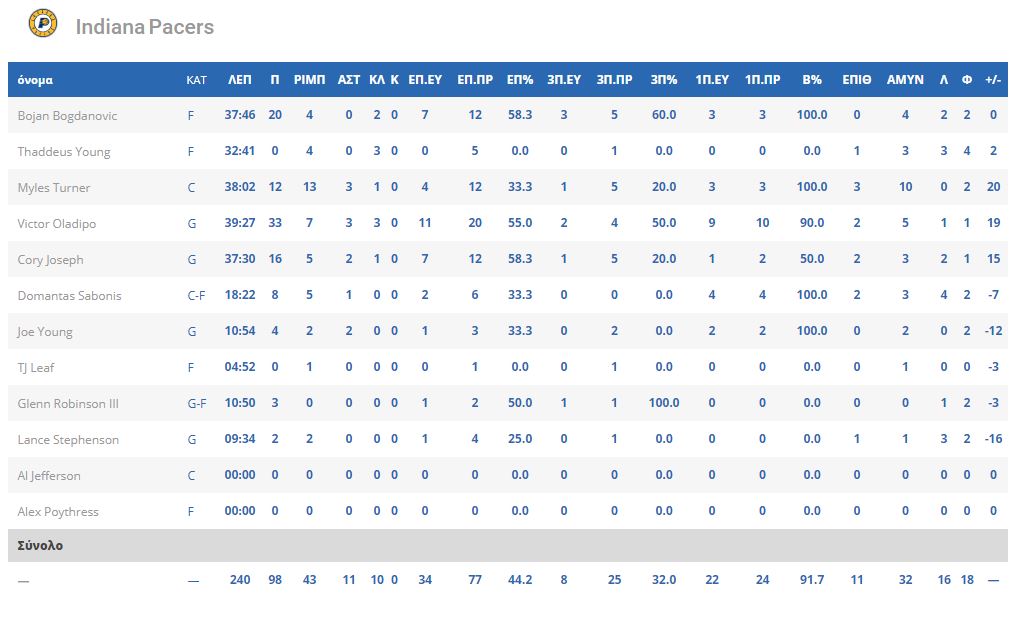 Ο Ολαντίπο είχε 33 πόντους όντας ο πρώτος σκόρερ του ματς ενώ ο Μπογκντάνοβιτς συμπλήρωσε άλλους 20. Για τους ηττημένους, ο μοιραίος Μπίελ είχε 22 πόντους κι ο Πόρτερ Τζούνιορ πρόσθεσε άλλους 17.